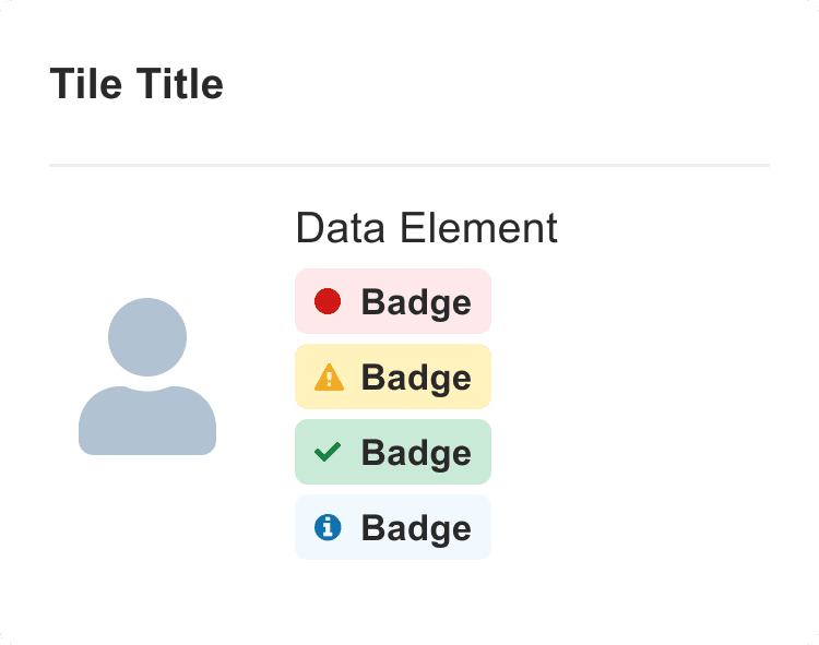 What was available to me were "tiles", which had two width options and included a title, description, and icon, and "badges" on the tile to provide quantitative and descriptive information ties to a form or form category.