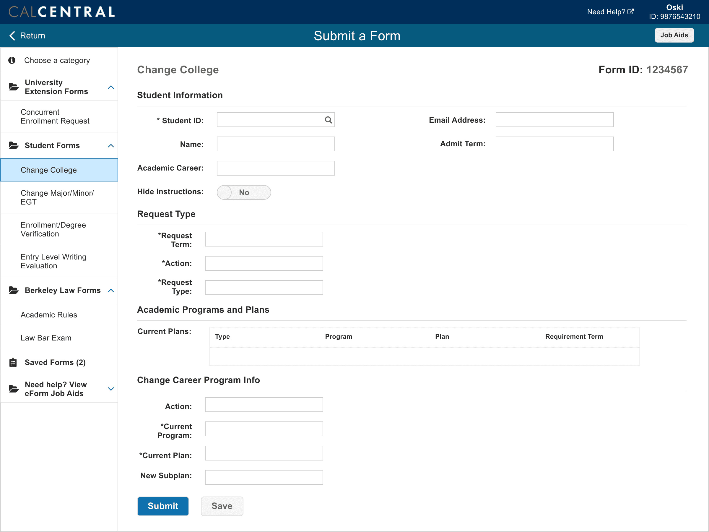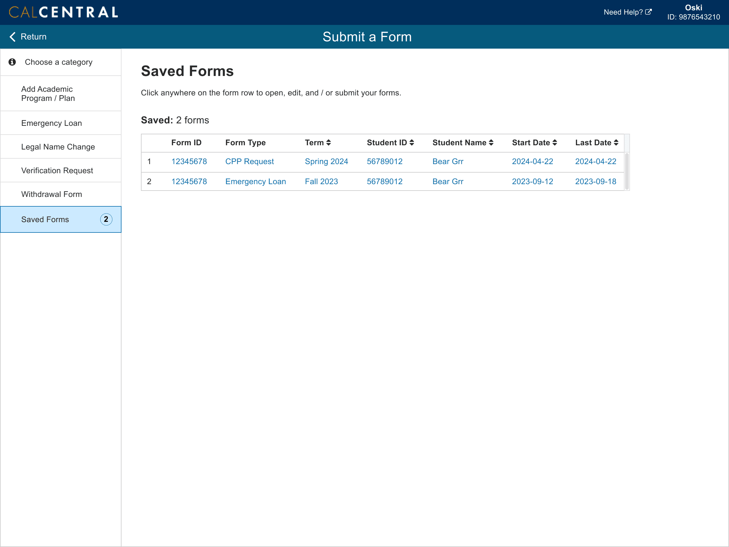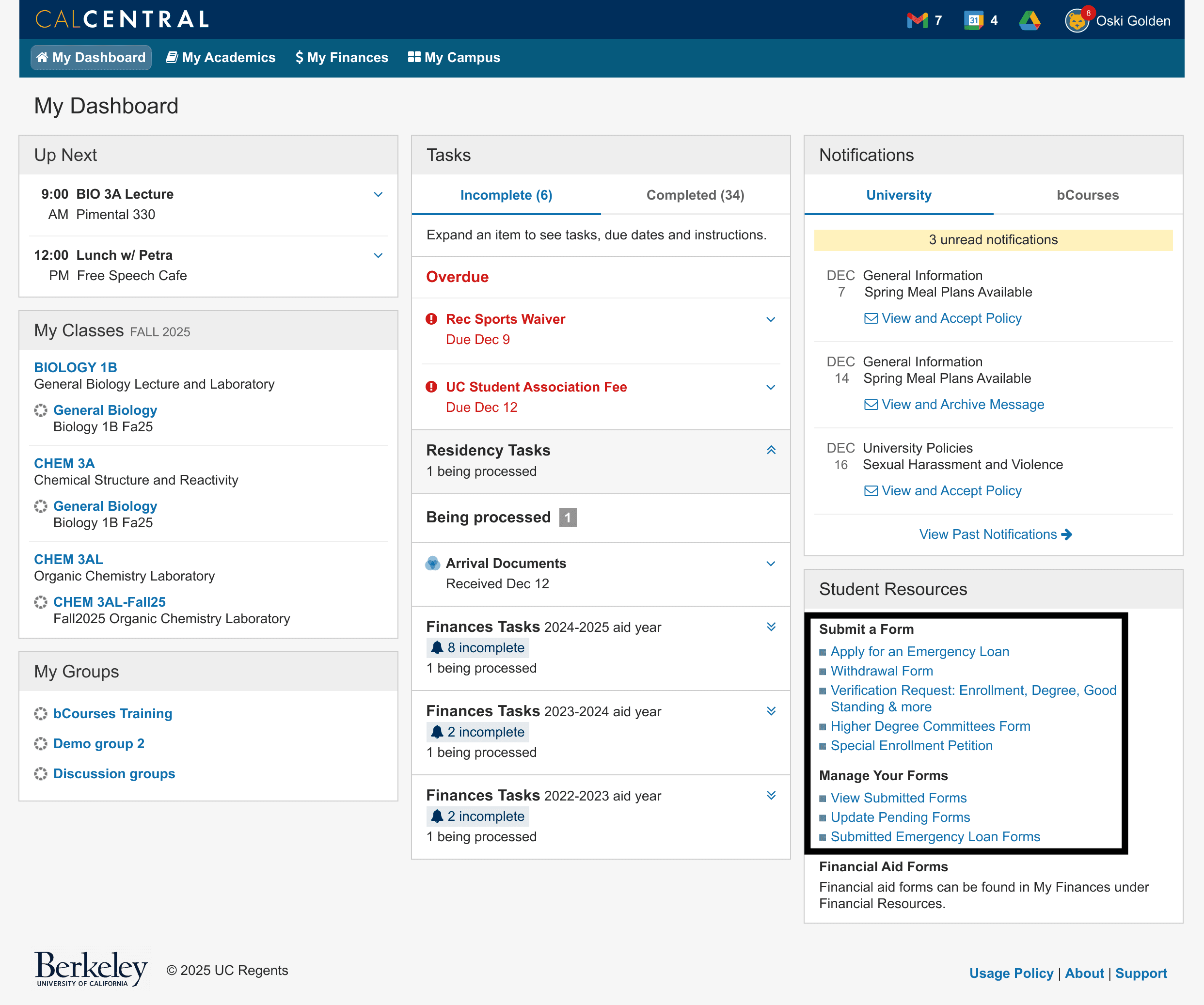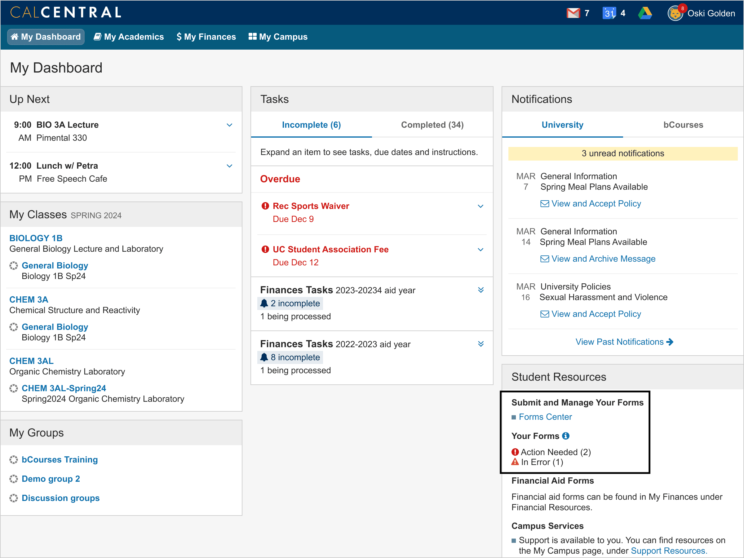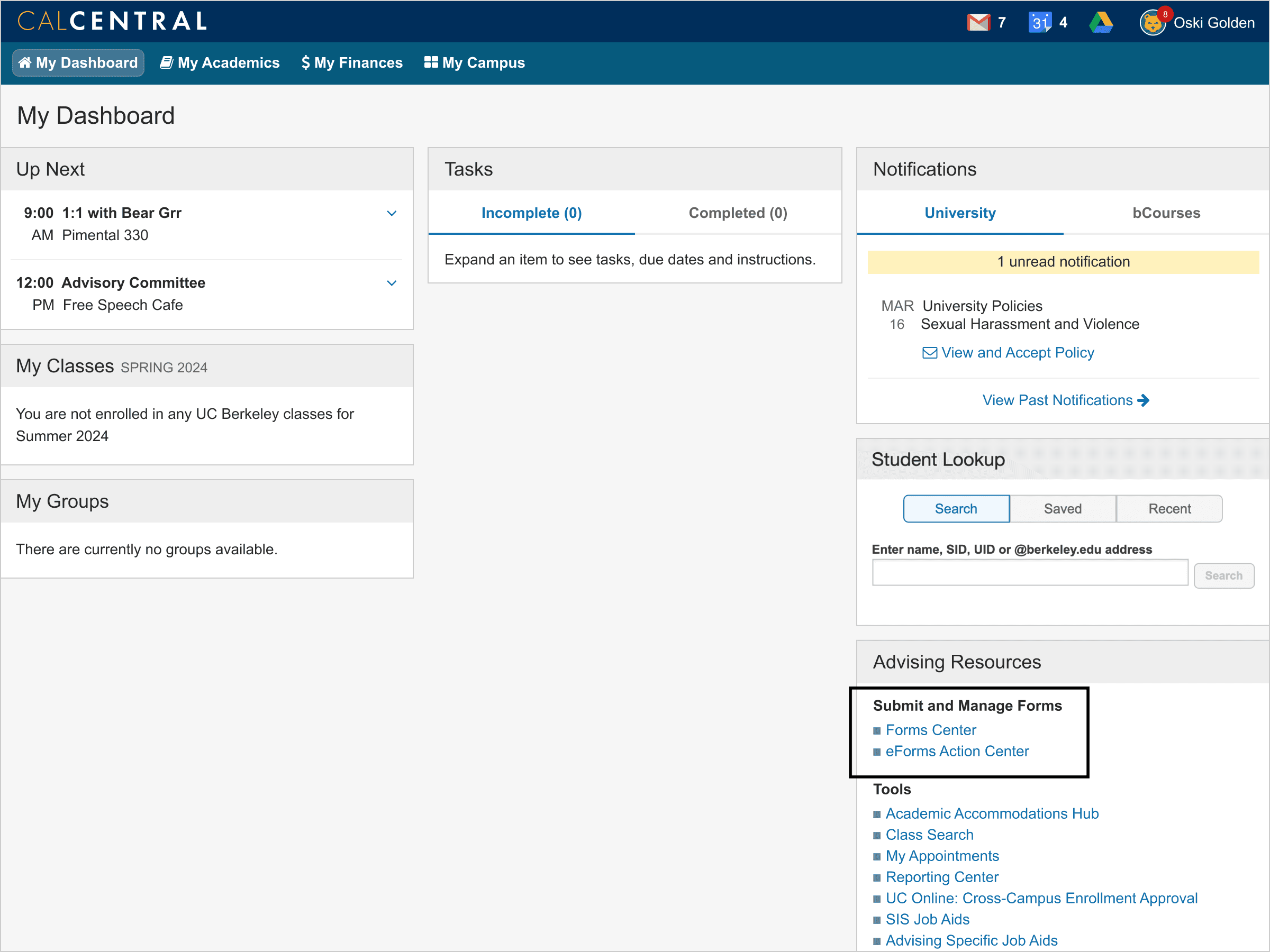 Both students and staff access forms through CalCentral, the student portal. However, there are multiple links to access forms and are not clearly distinguished.