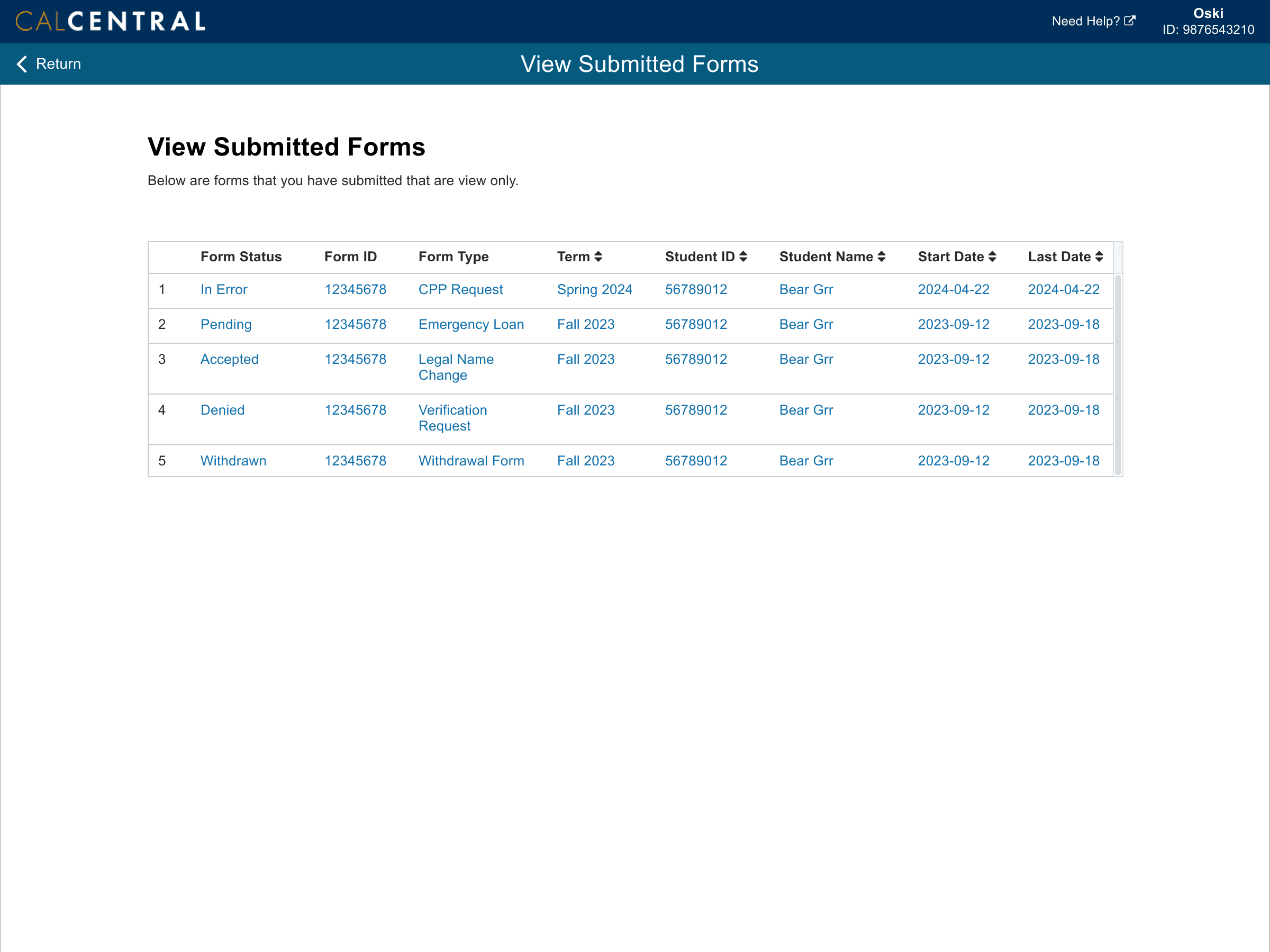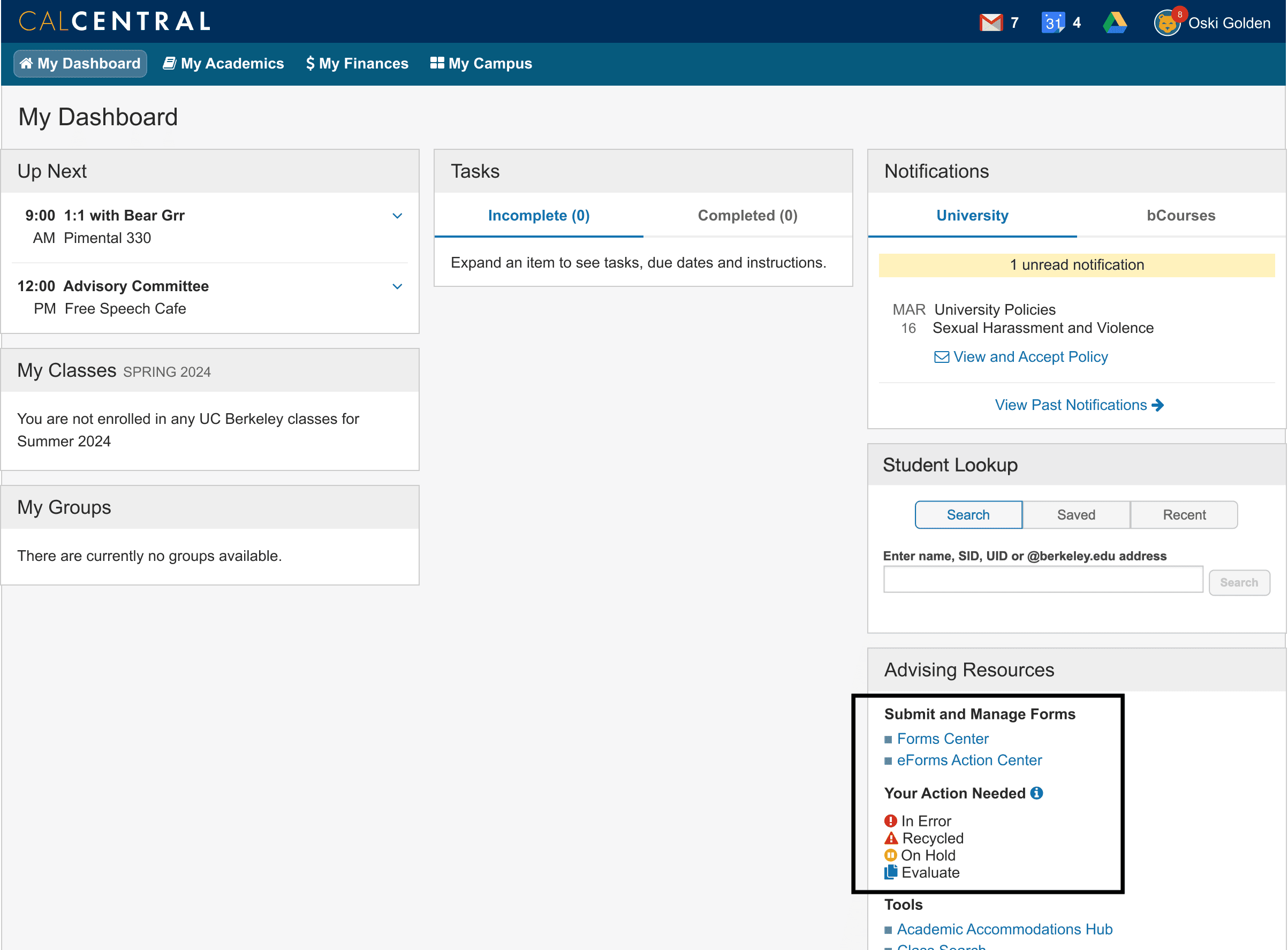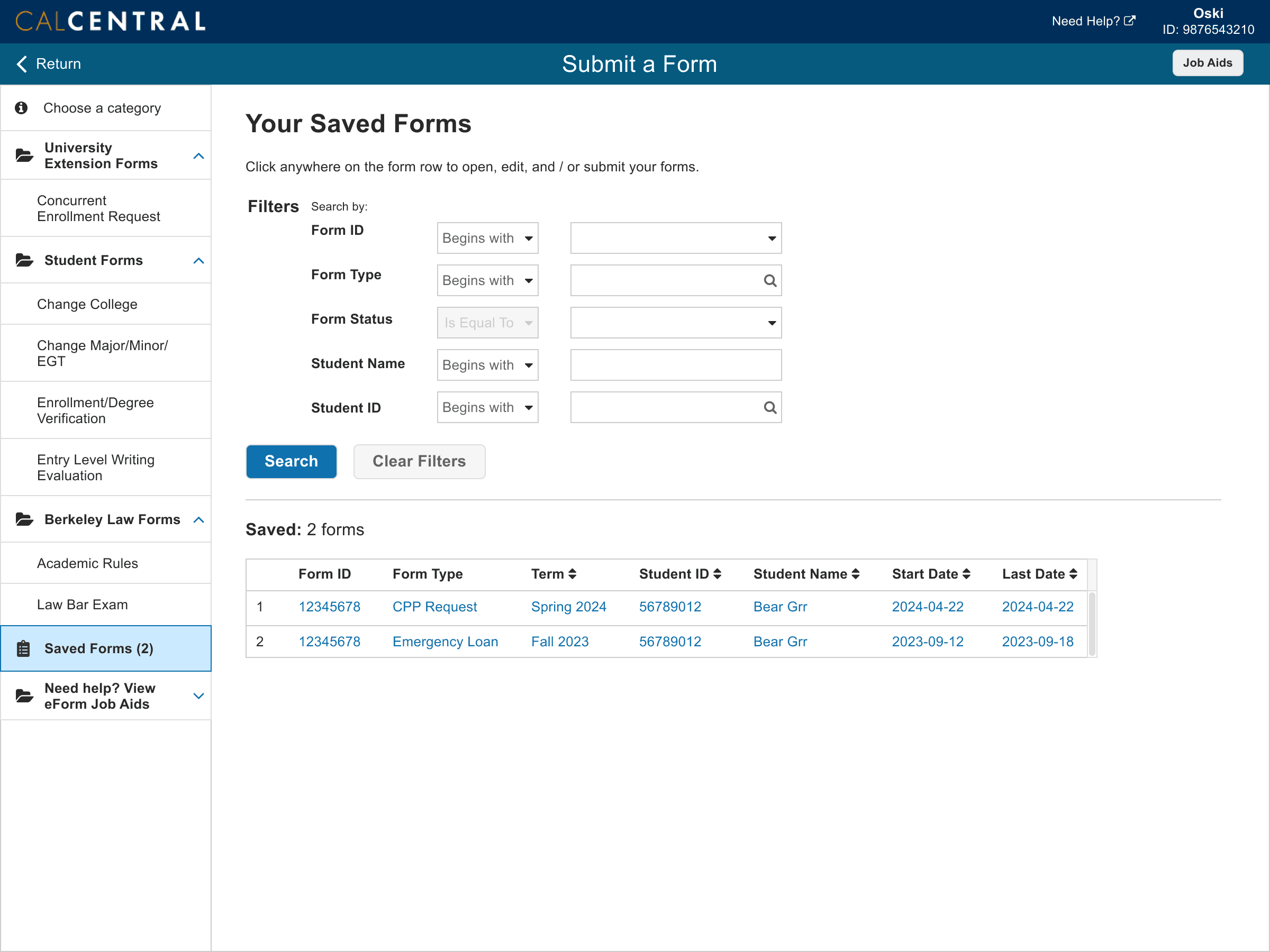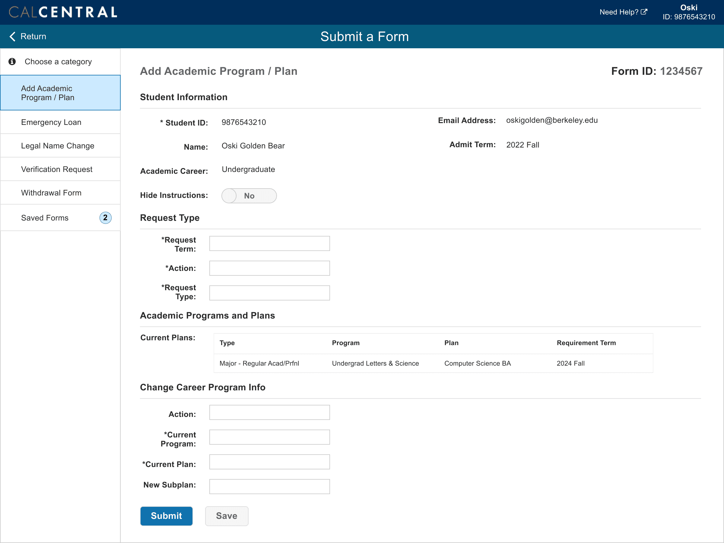 Both students and staff access forms through CalCentral, the student portal. However, there are multiple links to access forms and are not clearly distinguished.