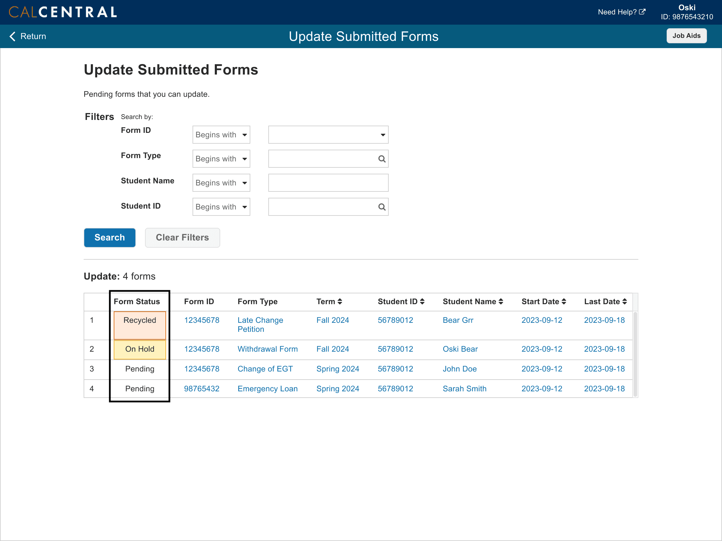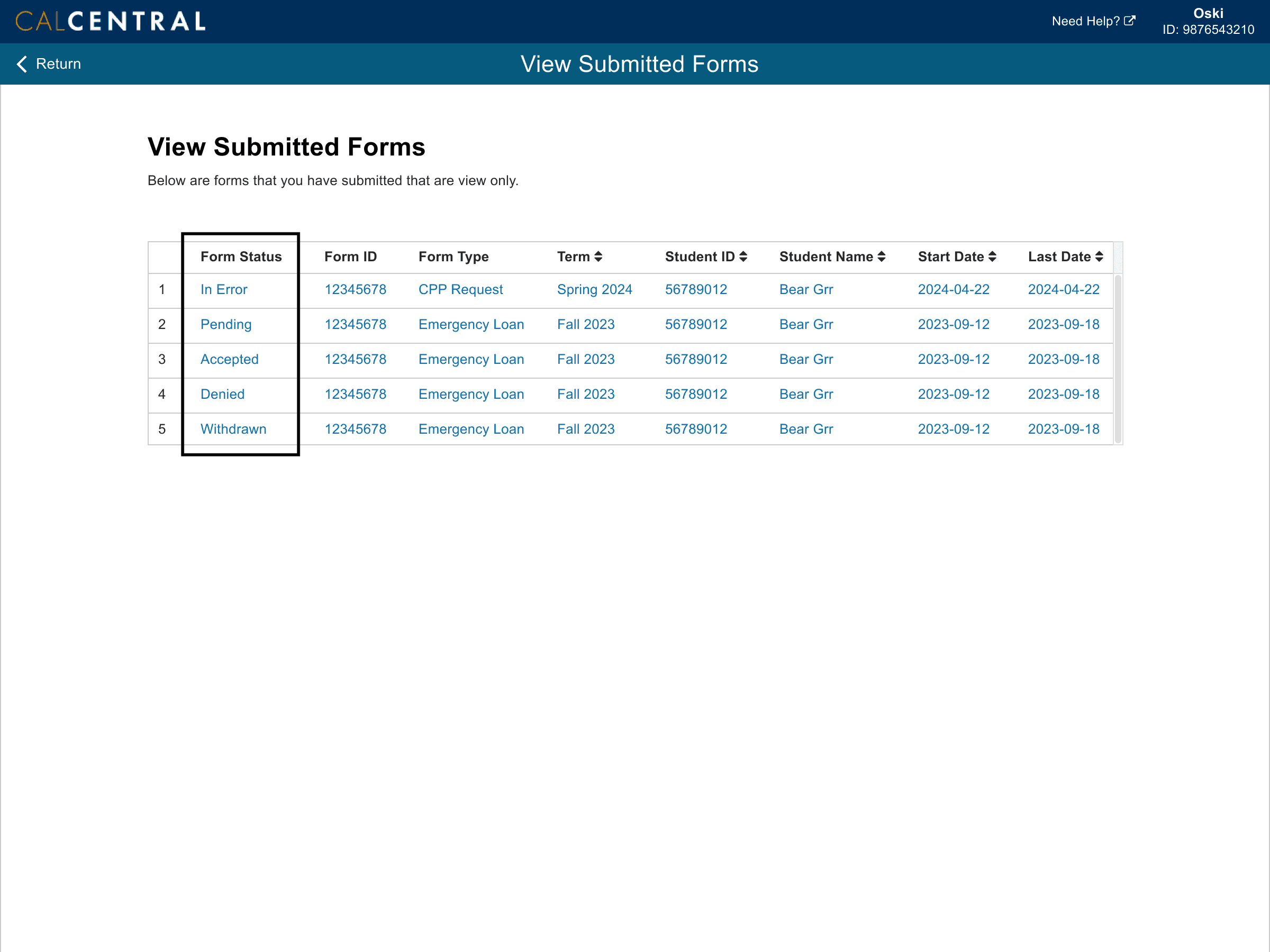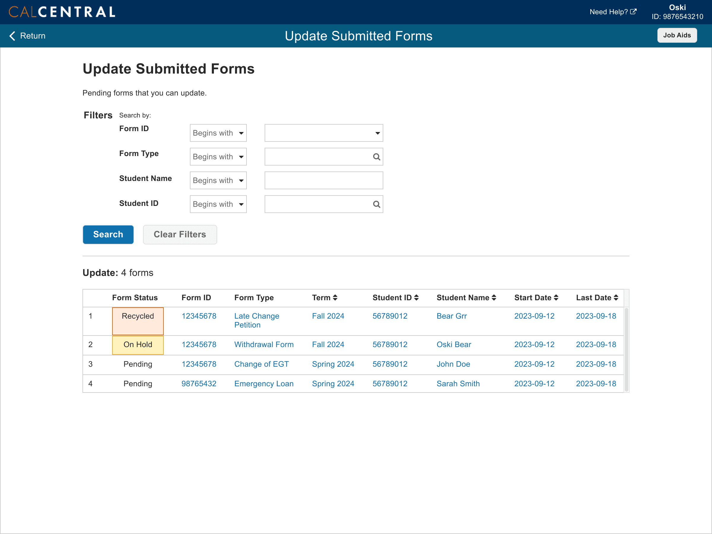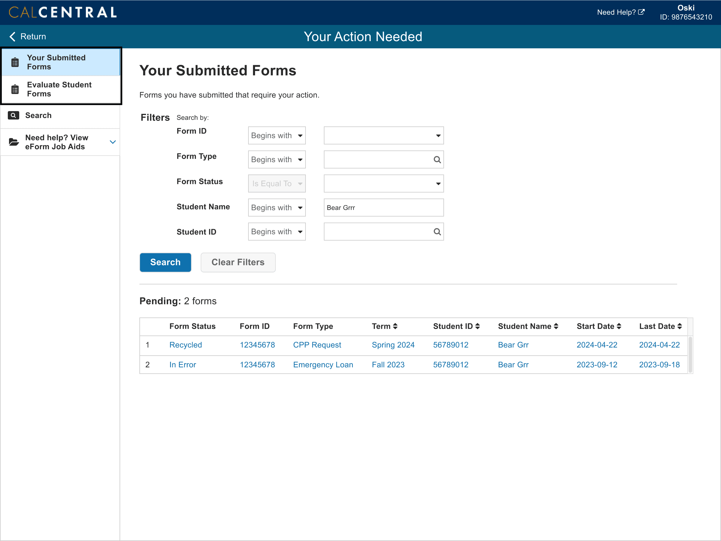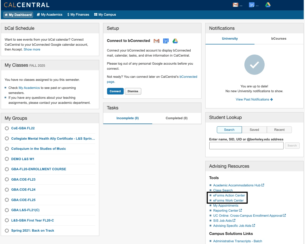 Both students and staff access forms through CalCentral, the student portal. However, there are multiple links to access forms and are not clearly distinguished.
