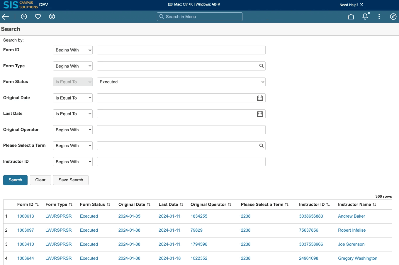The only way for students to access their eForms is through search, which presents unclear and jargon-y search criteria.
