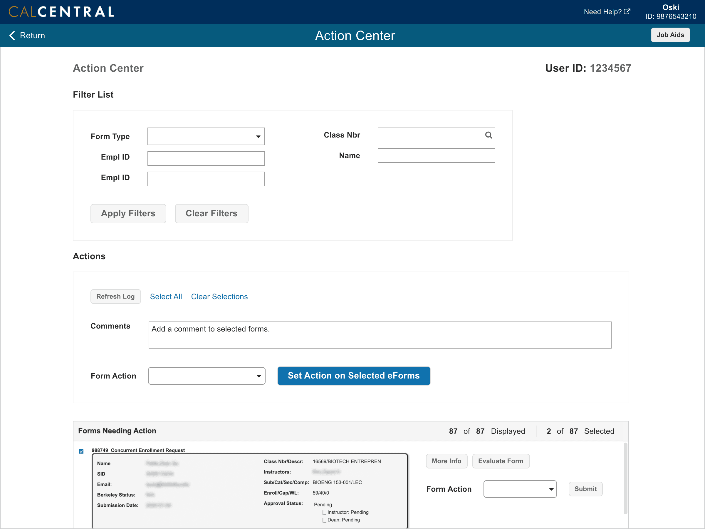 Staff liked accessing from both CalCentral and Campus Solutions, accessing Action Center directly without going into the Forms Center and did not require eForm information to be displayed on CalCentral.